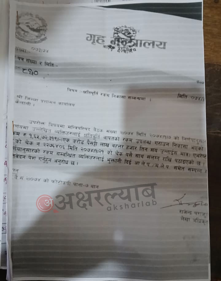 टीकापुर घटनाका आगजनि पीडितलाई राज्यले १० करोड ८३ लाख ४८ हजार ८१६ रुपैयाँ क्षतिपूर्ति वितरण गरेको छ ।