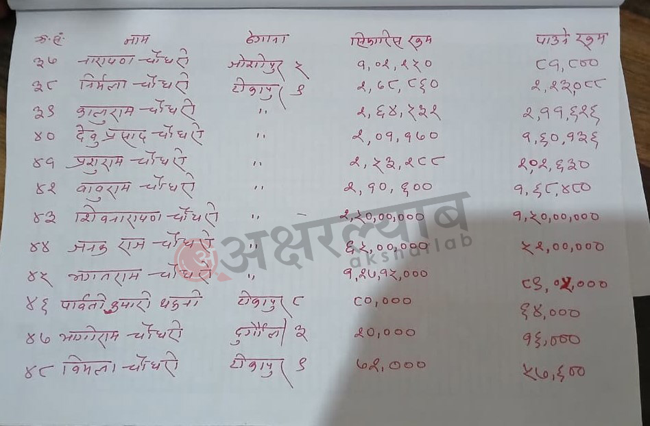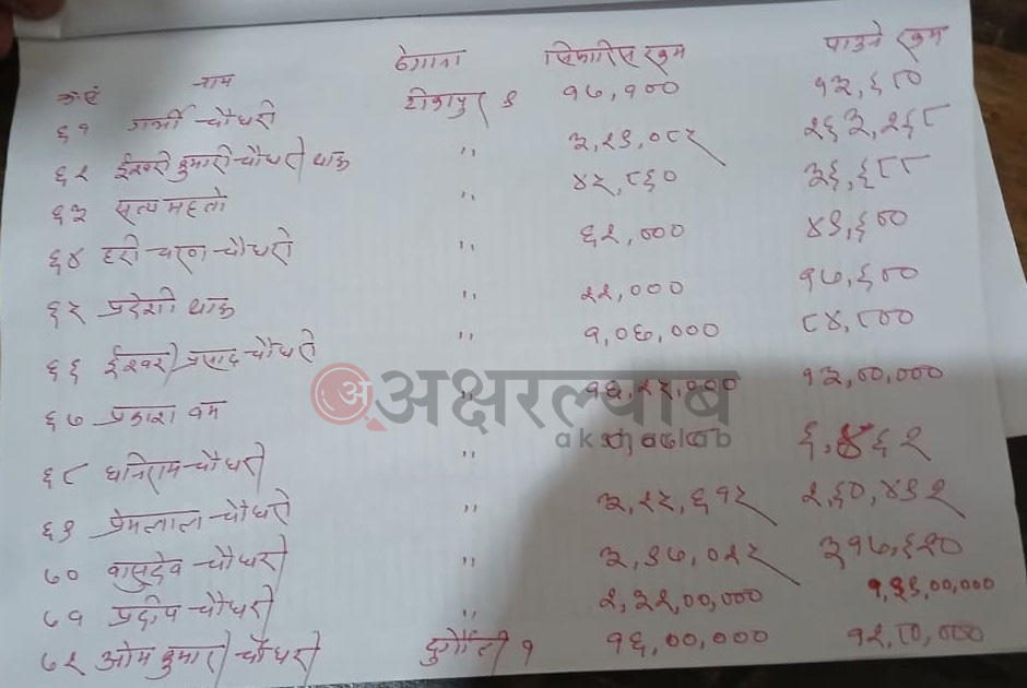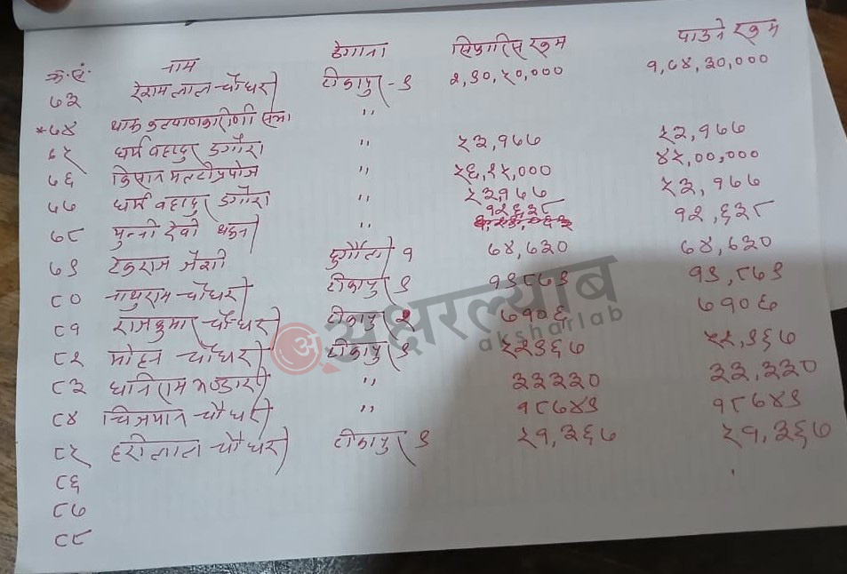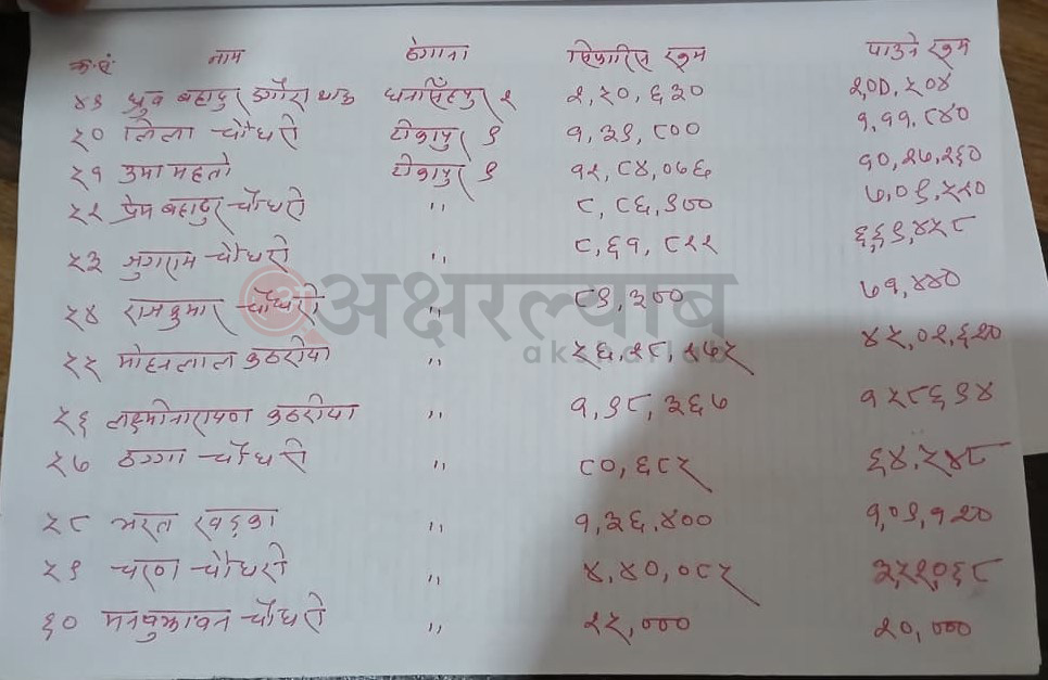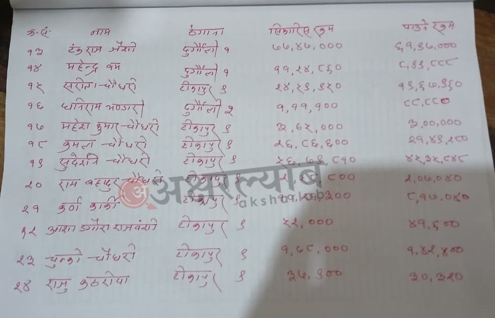 त्यस्तै, टीकापुर नगरपालिका ९ का शिवनारायण चौधरीको २ करोड ५०, प्रदीप चौधरीको २ करोड ३२ लाख बराबरको क्षति भएको सिफारिस गरिएको थियो ।