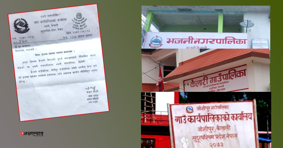 धनगढी : कैलाली जिल्लाका ३ पालिकाले इलाका प्रशासन कार्यालय स्थापनाको माग गर्दै गृह मन्त्रालयमा पत्रचार गरेका छन् ।